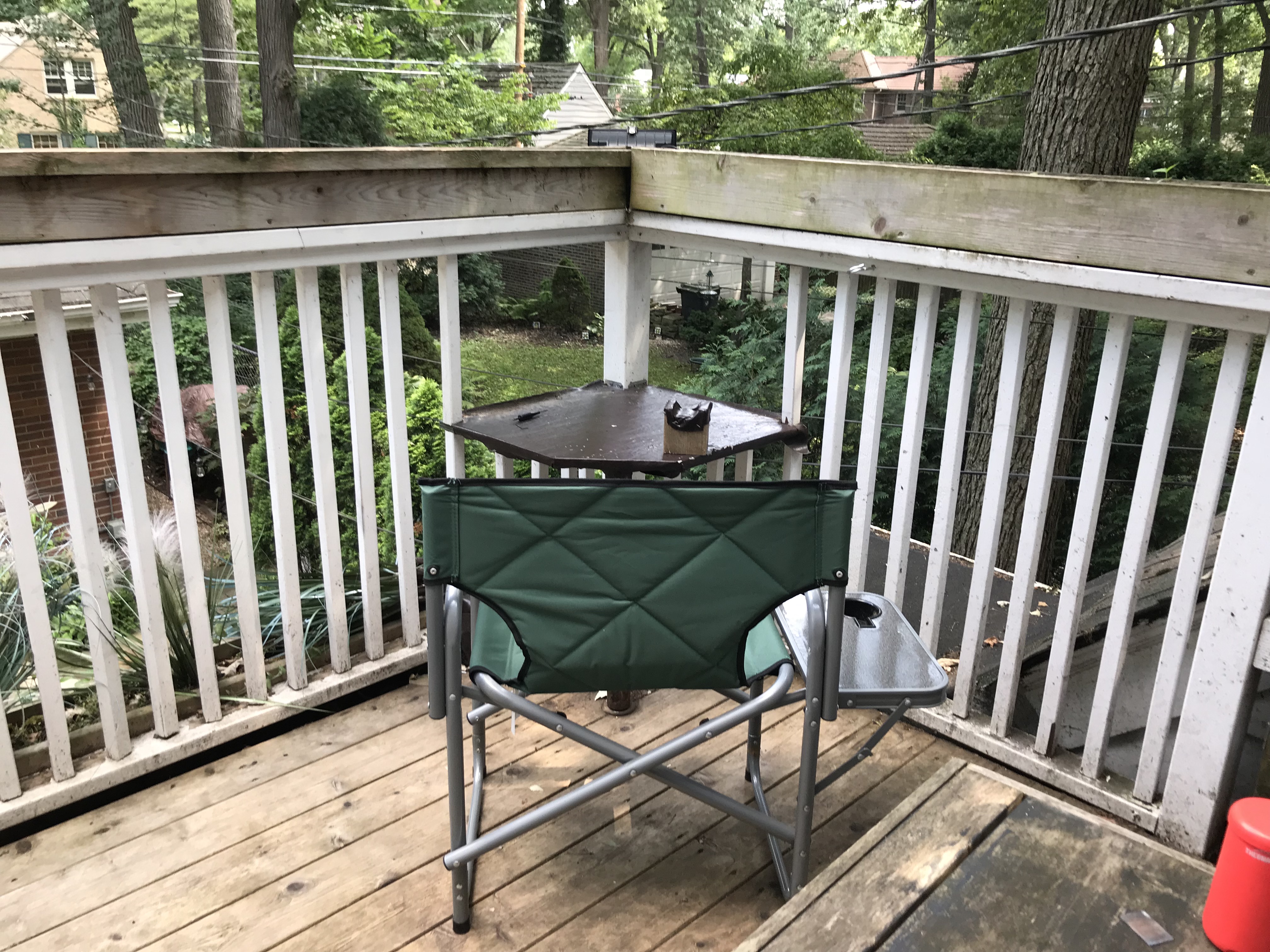 I've setup some bait (sunflower seeds), put a few traps around the known entrances, and then perched myself 15 feet up above in my office balcony / sniper nest.
