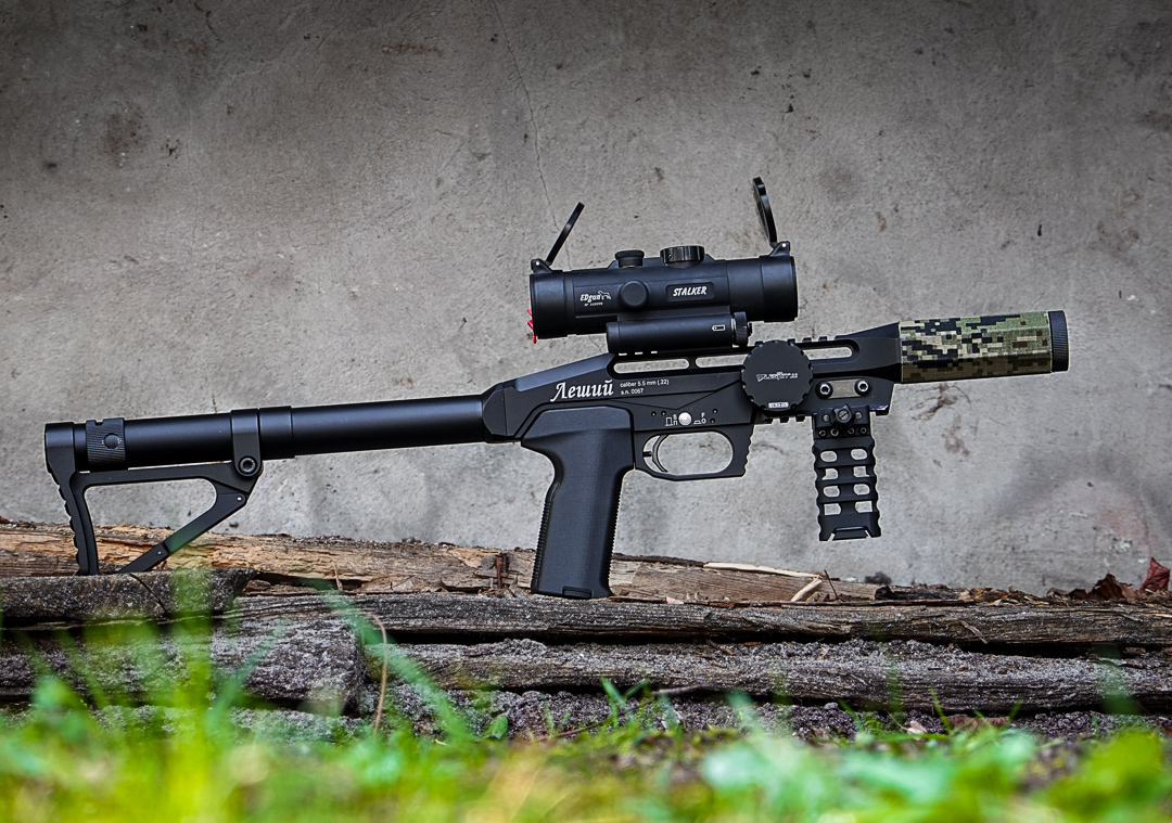 The idea is just so simple – full metal body (same kind of hard alloy as Leshiy), black anodized, and sized just big enough for easy operation but still small enough to keep low profile of Leshiy. It really looks like it belongs to Leshiy! And that branding… how cool is that! To install just pop-out the ammo wheel from chassis (held by magnets, no tools needed) and install with the provided screws and spacers on Leshiy's rail. Takes 3 minutes to install and adjust carefully. Gently thighten screws (don't overtight!) and put back the wheel. Done.